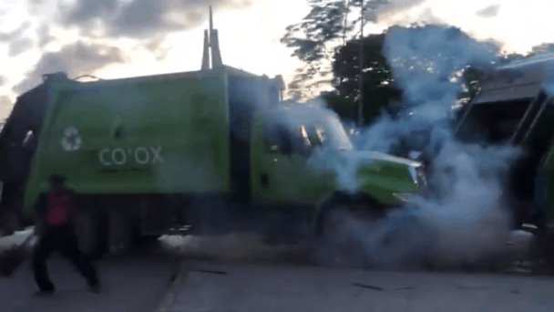 Trabajadores de recolección de basura en Cancún se enfrentan con policías