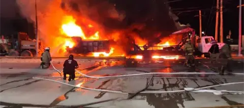 Ahí, elementos del Cuerpo de Bomberos, Protección Civil, Guardia Nacional y Seguridad Pública Municipal acudieron para sofocar el fuego y acordonar el área.