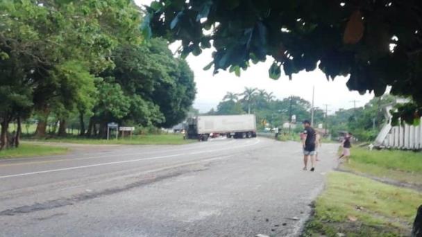 ¡Por esquivar a perrito! Conductor pierde el control y tráiler queda atravesado en la carretera en Centla