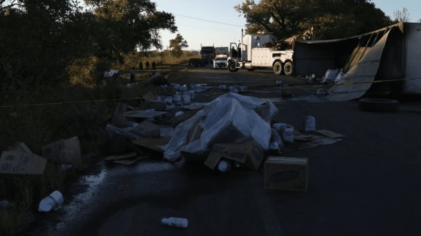 El parte de la corporación señala que acudieron al percance registrado sobre la carretera El Sueco-Janos, y al revisar la caja, que se encontraba volcada y obstruyendo la vía en ambos sentidos, se toparon con los paquetes.