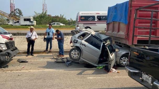 Una carambola más se registró este sábado. Y es que sobre la carretera Villahermosa-Cárdenas, a la altura del kilómetro 164, se registró un accidente donde se vieron involucradas cuatro unidades.