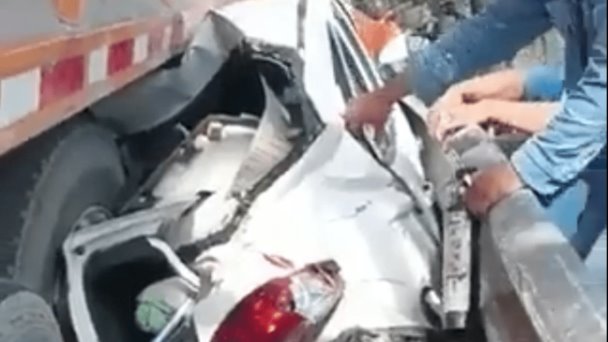 Tras el impacto, una camioneta y un taxi quedaron debajo de dos unidades pesadas