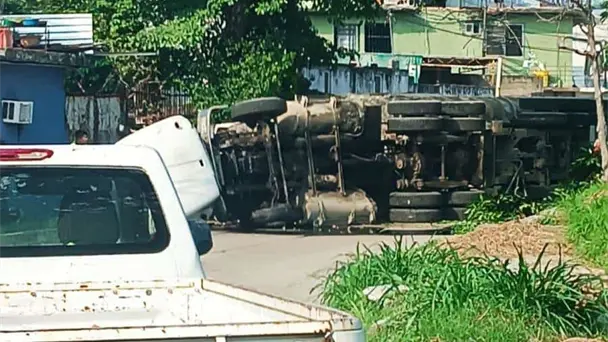 Tras el percance, la carga quedó esparcida sobre la vía, obstaculizando la entrada a una vivienda y no se informó de actos rapiña.