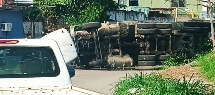 Vuelca góndola cargada con arena en la Av. Luis Donaldo Colosio en la colonia La Manga