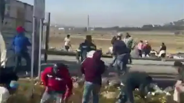 El tráiler transportaba una carga de jugos, por lo que, al sufrir el accidente gran parte de la mercancía quedó esparcida en la cinta asfáltica, lo que aprovecharon automovilistas y lugareños para "rapiñar".