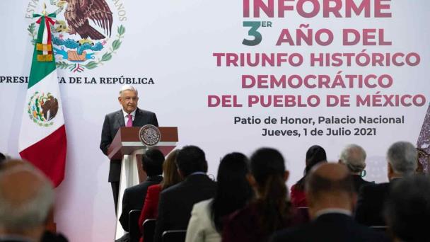 Durante su informe a tres años de haber ganado la elección, indicó que aun con la crisis de la pandemia y de la economía, se pudo celebrar una de las más numerosas y competidas elecciones de la historia de México, sin problemas mayores, pues al mismo tiempo se consolidó el sistema y el método democrático.