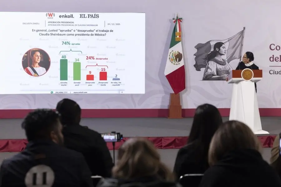 En el estudio realizada por Enkoll, se destaca que el 74 % de los encuestados respaldan el trabajo de la mandataria en lo que va de su administración, mientras que el 24 % lo desaprueba.