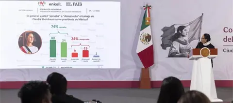 Ante los ataques contra la presidenta Claudia Sheinbaum, la secretaria de Gobernación (Segob), Rosa Icela Rodríguez, presumió un sondeo de aprobación ciudadana que tiene la titular del Ejecutivo federal.