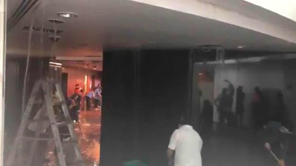 Trabajadores comenzaron a contener el agua, tratar de bloquear los tubos rotos y evitar que hicieran cortocircuitos en las instalaciones eléctricas.