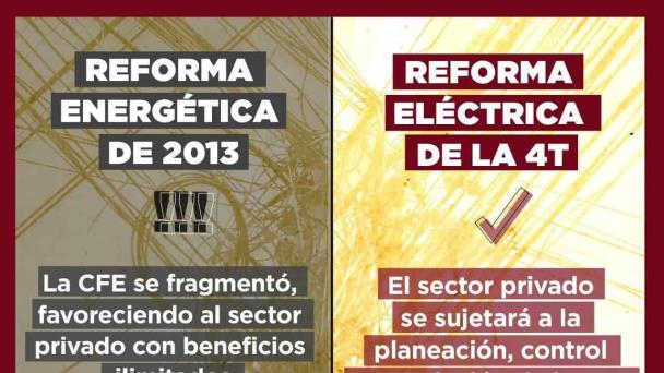 De la reforma energética, dijo que la CFE se fragmentó, favoreciendo al sector privado con beneficios ilimitados; en tanto, aseguró que con la eléctrica, el sector privado se sujetará a la planeación, control y regulación de la CFE.