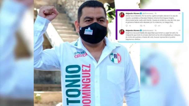 La dirigencia nacional del PRI denunció que sujetos armados atacaron el domicilio de su candidato a diputado federal por Morelos, Antonio Domínguez Aragón.