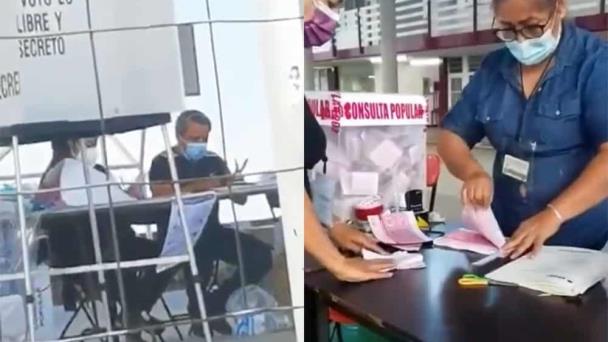 Otro video que fue publicado también muestra a unas personas rellenando las boletas de la consulta. Incluso se ha indicado que dicha situación se presentó en la escuela primaria federal Juan José de la Garza en Victoria, Tamaulipas.