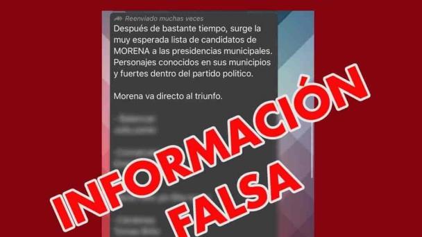 “Si llegas a recibir una cadena de WhatsApp con información de una presunta lista oficial de candidatos a las presidencias municipales por el partido MORENA, no caigas en el juego, ¡es información falsa!”, precisó.