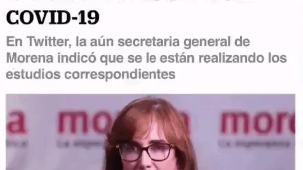Seguido, aparecen publicaciones de medios de comunicación donde se informa sobre los contagios de morenistas y funcionarios del gabinete, encabezando la lista el recién elegido dirigente nacional de MORENA, Mario Delgado, y Yeidckol Polevnsky.