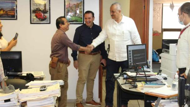 El gobernador Carlos Manuel Merino Campos, realizó este martes una visita a la Secretaría de Gobierno, donde se reunió con su titular, Guillermo del Rivero León.
