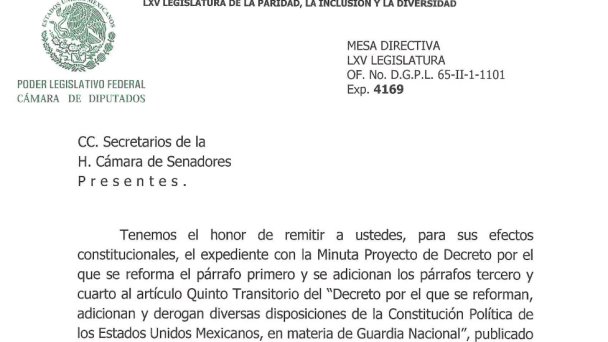 Momentos después de ser aprobada en la Cámara de Diputados, el Senado de la República recibió la minuta que extiende hasta 2028 la permanencia de las Fuerzas Armadas en tareas de seguridad pública.