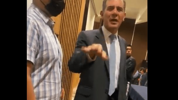 “Señor Lorenzo Córdova, hay quienes no nos olvidamos que usted es un racista y que no es bienvenido en la UNAM, y que usted no tiene ninguna autoridad moral para venir a hablar de la democracia a la UNAM. – Afortunadamente en la UNAM cabemos todos. – No, por eso. Se lo externamos, que usted no es bienvenido a la UNAM y que es un racista. – Sí, todos cabemos, tú y yo, todos cabemos. Mucho gusto, encantado. Cuídate mucho. – No tiene ninguna autoridad moral para venir a hablar de democracia. – No es el momento, compañero. - Ni autoridad académica, ni intelectual, ni autoridad política”, se escucha.