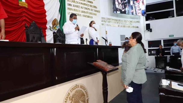 Perla Clara del Rocío Pérez de la Cruz tomó protesta este lunes como diputada local, en suplencia de Beatriz Milland Pérez, quien solicitó licencia temporal, dado que fue designada como candidata de MORENA a la alcaldía de Paraíso.