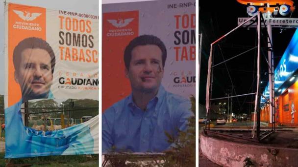 El candidato a diputado plurinominal de Movimiento Ciudadano (MC), Gerardo Gaudiano Rovirosa, denunció que sus espectaculares fueron vandalizados.