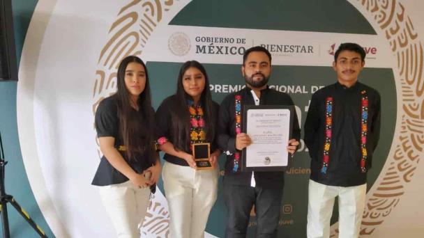 El director del Instituto Mexicano de la Juventud (IMJUVE), Guillermo Rafael Santiago Rodríguez, entregó el Premio Nacional de la Juventud 2021, a tres jóvenes del municipio de Balancán, por su proyecto “Biofita, una plaga que da vida”.
