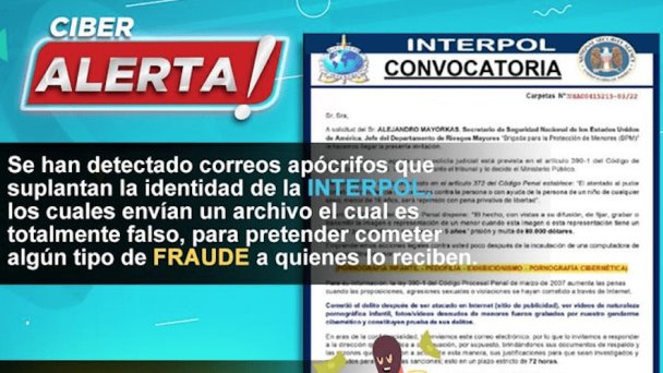 Por ello, aclaró que la Organización Internacional de Policía Criminal no envía convocatorias, ni notificaciones a los correos de la ciudadanía, solicitando información personal, ni de ninguna índole.