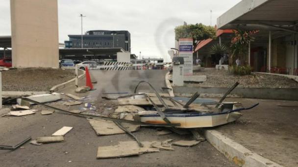 Al lugar acudió personal de Protección Civil, que tras verificar que no hubo heridos, procedió a acordonar la zona del siniestro para evitar el paso de autos y de personas por temor a que se siguiera derribando.