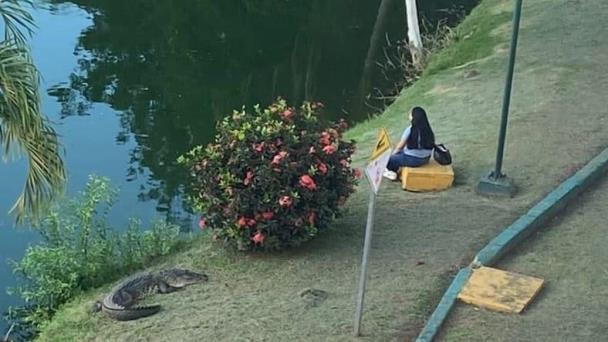 Pese a que en los últimos tres años se han registrado al menos seis incidentes relacionados con ataques de cocodrilos, los alumnos de la UJAT parecen retar a su suerte sentándose a descansar o tomándose fotos a escasos metros de los saurios.