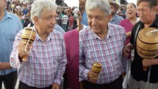 Y es que López Obrador respaldó el mensaje con un video donde aparece en una plaza, acompañado del candidato de Morena a la gubernatura del estado, Adán López y otras personas y con uno de ellos Juega balero.