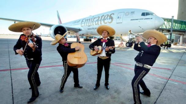 Aterriza primer vuelo de Emirates Airlines en suelo mexicano