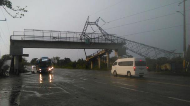 Por ello, una torre de alta tensión cayó encima de un puente peatonal que hay en la entrada de Simón Sarlat y esto provocó también la caída de cables de alta tensión; personal de la Comisión Nacional de Emergencias abanderó la zona en espera de las autoridades.