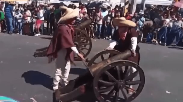 Cañón explota en mano de danzante durante carnaval de Huejotzingo, Puebla