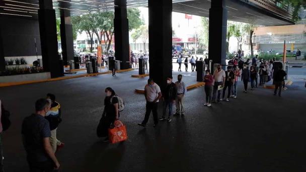 En el primer día de reapertura de los centros comerciales en la Ciudad de México, se registraron largas filas de ciudadanos que, sin aplicar muchos de ellos la sana distancia, pretendían ingresar a los establecimientos.