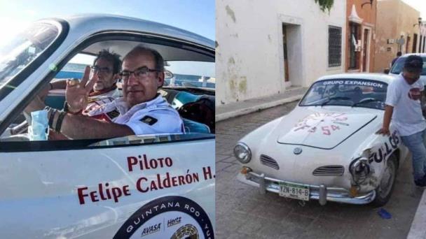 Horas después del banderazo de salida de la séptima edición del Rally Maya 2021, comenzó a circular en redes sociales una imagen del vehículo clásico en el que viajaba el expresidente, Felipe Calderón, el cual fue chocado en el centro de Campeche.