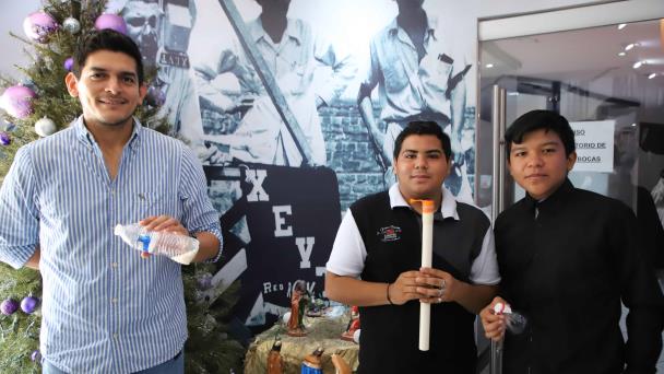 Con un tubo de PVC, botellas de plástico, globos, un CD, pinzas, manguera para cableado eléctrico y hasta arroz, así fue como los alumnos del Cecyte plantel 12 hicieron sus instrumentos musicales para lo que en primera instancia era un recital de fin de año, pero que después se convirtió en un video musical que ya ha sido compartido más de 24 mil veces.