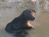 En el video de 27 segundos, se observa al perrito echado dentro de un charco de agua lodosa, una mujer lo llama a la orilla, pero este permanece inmóvil de sus piernas traseras y únicamente mueve sus patas delanteras.