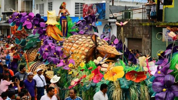 Aquí la descripción del carro alegórico que tenía un enorme garrobo naranja: