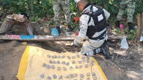 Tras un fuerte operativo los elementos del Ejército Mexicano y de la Guardia Nacional lograron desmantelar un campamento de narcomenudistas en Paraíso, en el que se aseguraron drogas, armas y hasta una lona con los precios de cada narcótico.