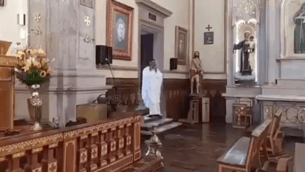 El momento fue captado por las cámaras que suelen transmitir por Facebook las misas, para aquellos fieles que no pueden asistir por las medidas de distanciamiento social.
