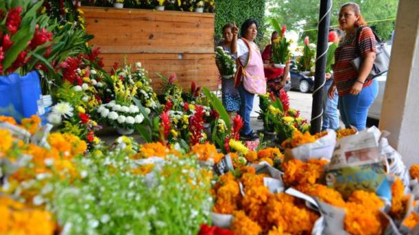 Desde muy temprano, los vendedores de flores permanecen a las afueras de los principales panteones de la ciudad, eligiendo y detallando algunos ramos donde destacan los de cempasúchil, nube, terciopelo, claveles y crisantemos.