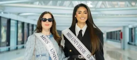 Uno de los momentos más comentados en redes sociales, ha sido su llegada y emotivo encuentro con Raschel Paz, Miss Universe Guatemala, quienes, para celebrar su amistad, decidieron recrear una fotografía que rápidamente se volvió viral.