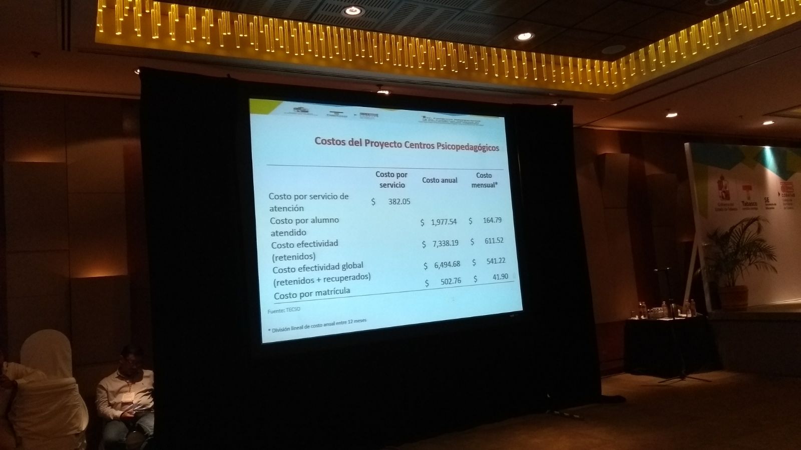 Luego de participar como ponente en el primer Congreso internacional y segundo congreso internacional de educación media superior, con el tema “Evaluación del Impacto de los Centros Psicopedagógicos como estrategia exitosa contra el abandono escolar”, donde refirió que por año en cada subsistema se invierten entre 25 y 35 mil pesos en el “rescate” de estudiantes para evitar que dejen sus estudios, el funcionario precisó que se tiene la meta este año de sumar hasta 43 centros en todo el estado al interior de los planteles del COBATAB.