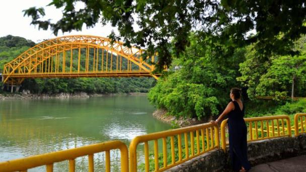 Boca del Cerro es uno de los lugares más bellos y representativos de Tenosique; goza de una vista privilegiada compuesta por el caudaloso río Usumacinta y el puente del mismo nombre. En la imagen, una turista se toma unos instantes para contemplar este paisaje único bajo la fresca sombra de un árbol.