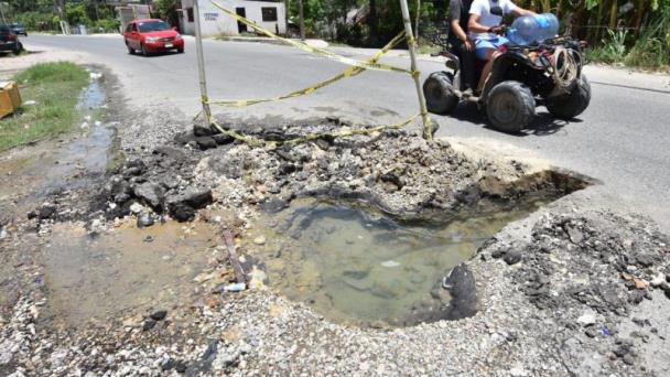 Lo que sería una reparación de fuga de agua en la carretera a Samarkanda, colonia Los Pinos, terminó en un gran hoyo lleno de agua que ocupa todo un carril. De acuerdo a los habitantes, hace 10 días llegaron tres personas a reparar la fuga, abrieron la calle y no regresaron, dejando la carretera en pésimas condiciones y poniendo en riesgo a los automovilistas que circulan por la zona.