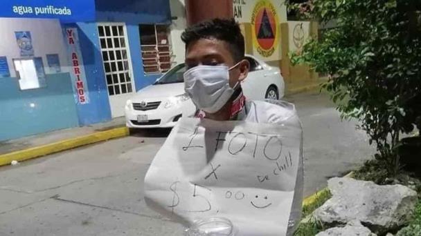 Le colocaron una cartulina con la leyenda “1 foto por 5.00 pesos”
