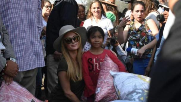 Hilton, quien se encuentra en la capital para presentar una nueva temporada de su línea de zapatos, se tomó el tiempo para ir al sur de la ciudad y repartir cobijas y ropa a los damnificados presentes.
