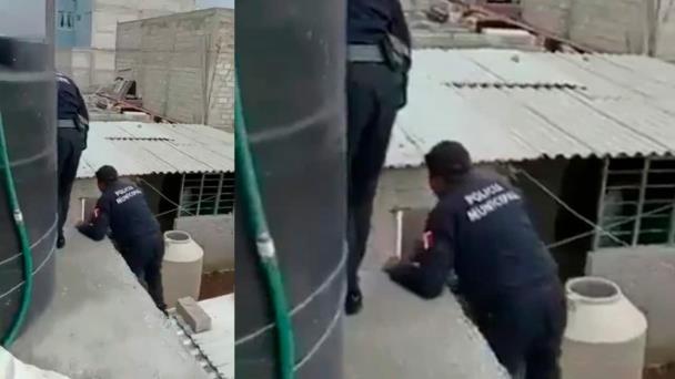 En un video que circula en redes sociales, se observa cuando policías municipales entran a la vivienda por medio de la azotea.
