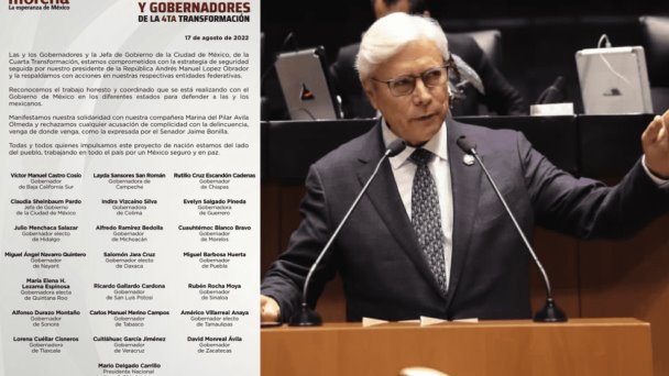 Los gobernadores en funciones y electos de Morena y aliados, así como la jefa de Gobierno de la Ciudad de México, Claudia Sheinbaum, se solidarizaron con la mandataria de Baja California, Marina del Pilar Ávila, quien fue acusada por el senador Jaime Bonilla de supuestos pactos con la delincuencia organizada.