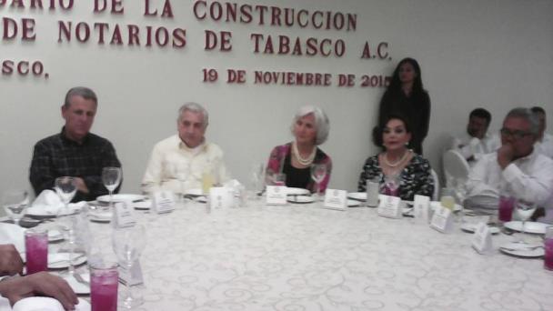 Durante el evento, los representes de la familia Neme Sastré no hicieron uso de la palabra, sin embargo, permanecieron en una larga charla con el presidente del gremio y el gobernador Arturo Núñez, quien después de dos horas de reunido con el gremio notarial se retiró del lugar y fue despedido por el titular de Capufe, Benito Neme.
