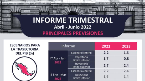 De acuerdo al reporte trimestral de Banxico, estas previsiones se realizan debido a la alta inflación y sobre todo por el enfriamiento de la economía de Estados Unidos, principal socio comercial de México.