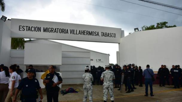 Se amotinan migrantes en el albergue de Ciudad Industrial, en Villahermosa